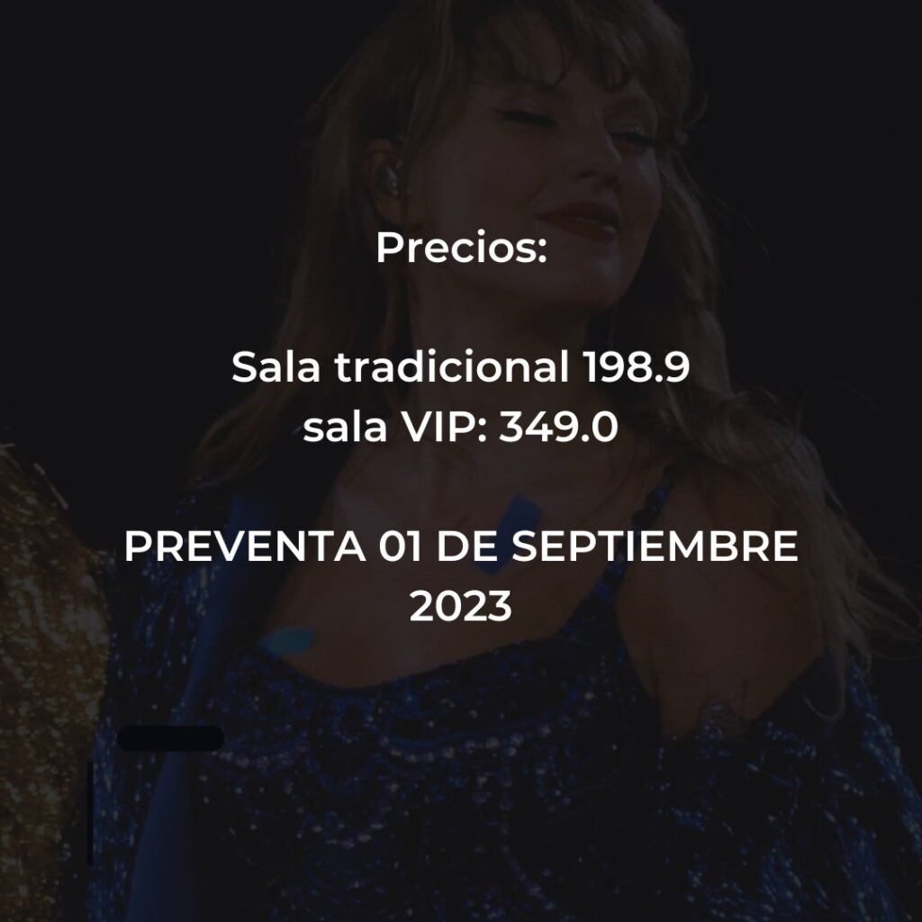 La preventa de boletos para esta experiencia cinematográfica excepcional comenzará el viernes 1 de septiembre. Los seguidores de Taylor Swift y los amantes de la música en general tendrán la oportunidad de reservar sus boletos y asegurarse un asiento para el estreno que está programado para el 13 de octubre en cines de Estados Unidos.