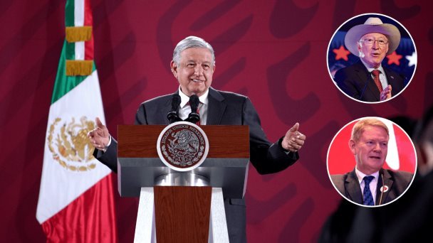 “‘Embajadores de Estados Unidos y Canadá ponen peros’, ¿quiénes son ellos? Con todo respeto”, dijo el Mandatario al leer los encabezados de los diarios.