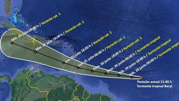 La madrugada de este 29 de junio, se formó la Tormenta Tropical Beryl en el océano Atlántico y podría convertirse en el primer huracán del año antes de llegar al mar Caribe la próxima semana.