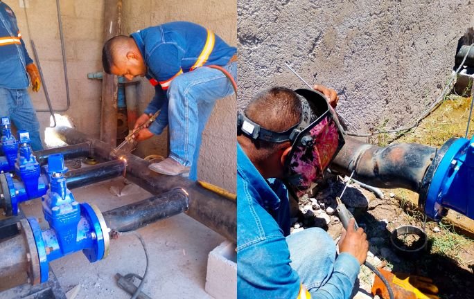 Personal de Agua de Hermosillo sigue chambeando en los equipos de rebombeo de San Luis y también atendiendo un problema en una tubería de 10 pulgadas que lleva agua al Tanque Café Combate. Por eso, tuvieron que cerrar temporalmente unas válvulas de control.