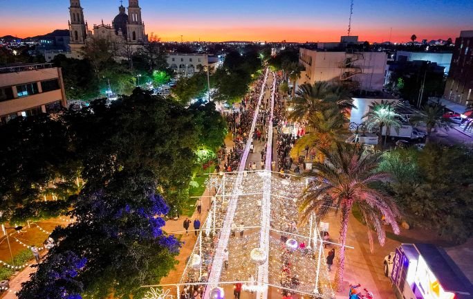Desde las 5 de la tarde, el coro Orfeón Sonora ambientó el lugar antes del reparto del tradicional postre, en el que se colocaron 100 monitos. Estos fueron intercambiados por bolsas de dulces, recuerdos de la Universidad Vizcaya y vales de comercios de la Plaza Zaragoza.